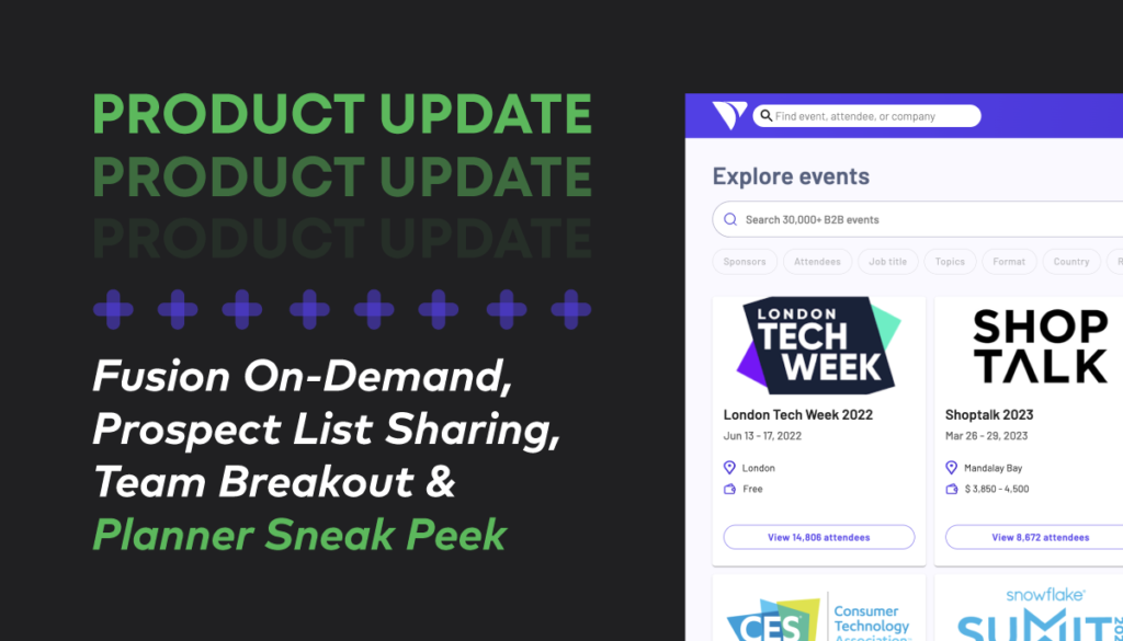 Don’t see all the information you’re looking for? Fusion offers a data-on-demand solution to provide higher frequency event monitoring and deliver even deeper attendee-level insights. With one click within Vendelux, you can gain access to the best event intelligence out there for all your high priority events.